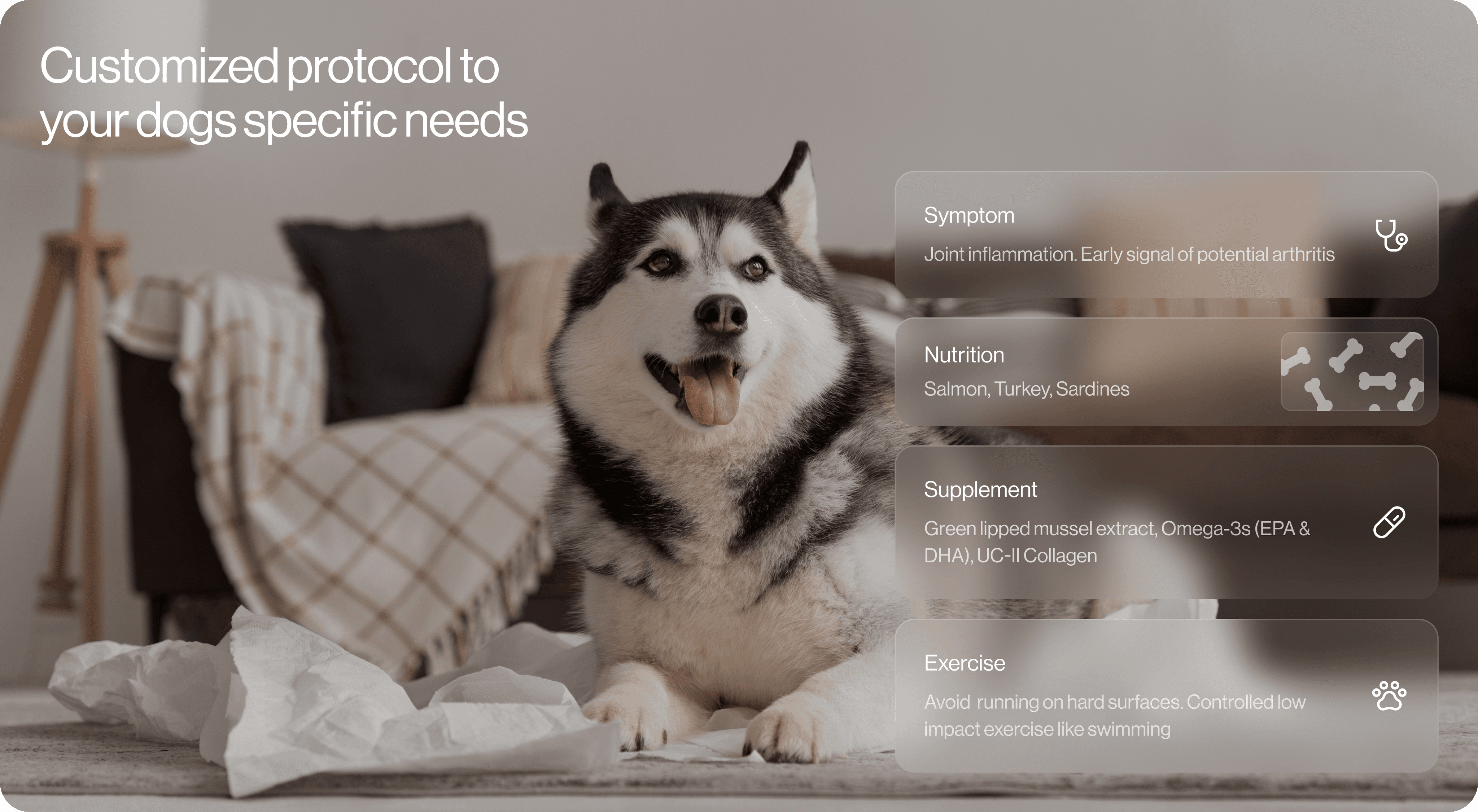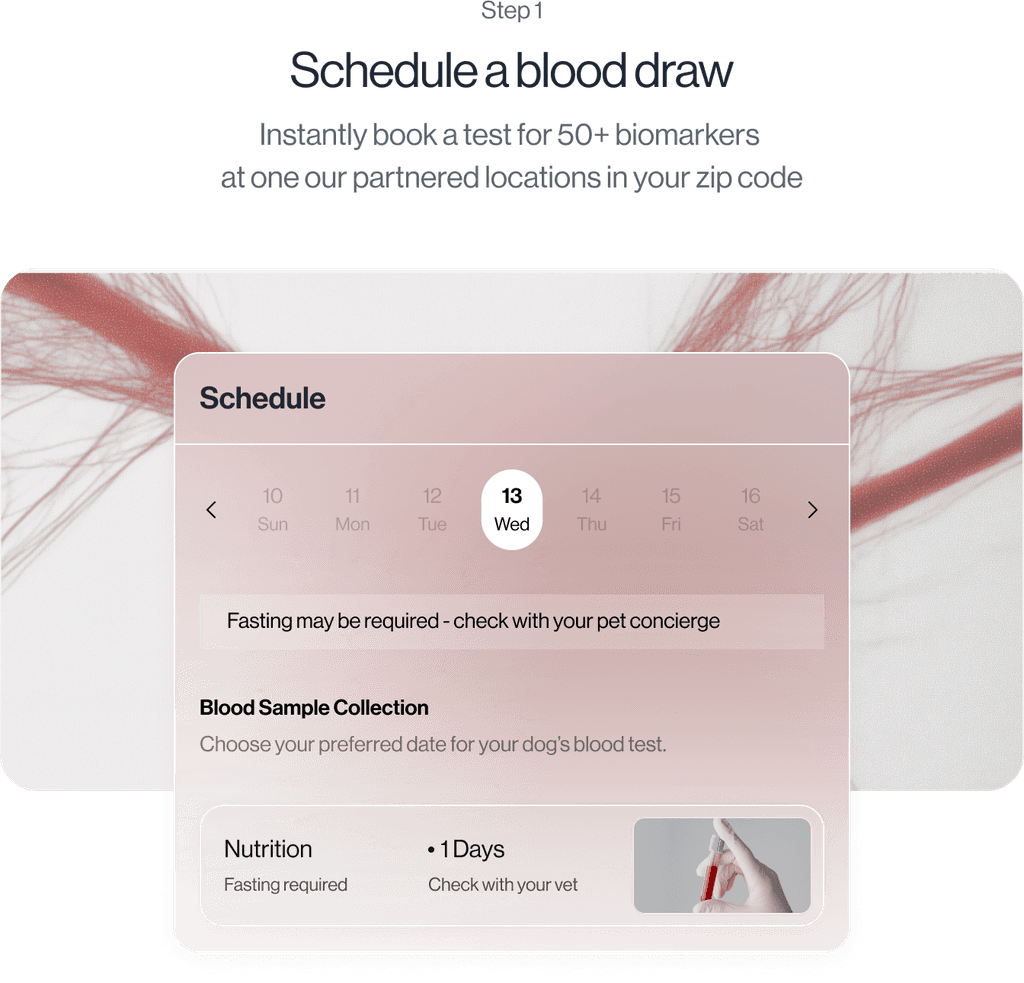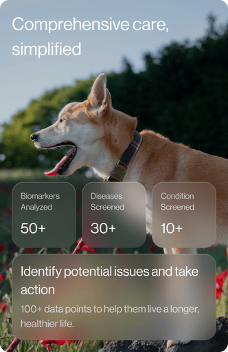 We partner with licensed veterinary professionals to collect your dog’s blood, stool, and saliva samples as needed. These are analyzed in certified labs. The results are uploaded into our platform, where our AI models interpret 50+ biomarkers and generate a personalized health plan, reviewed by veterinary advisors.